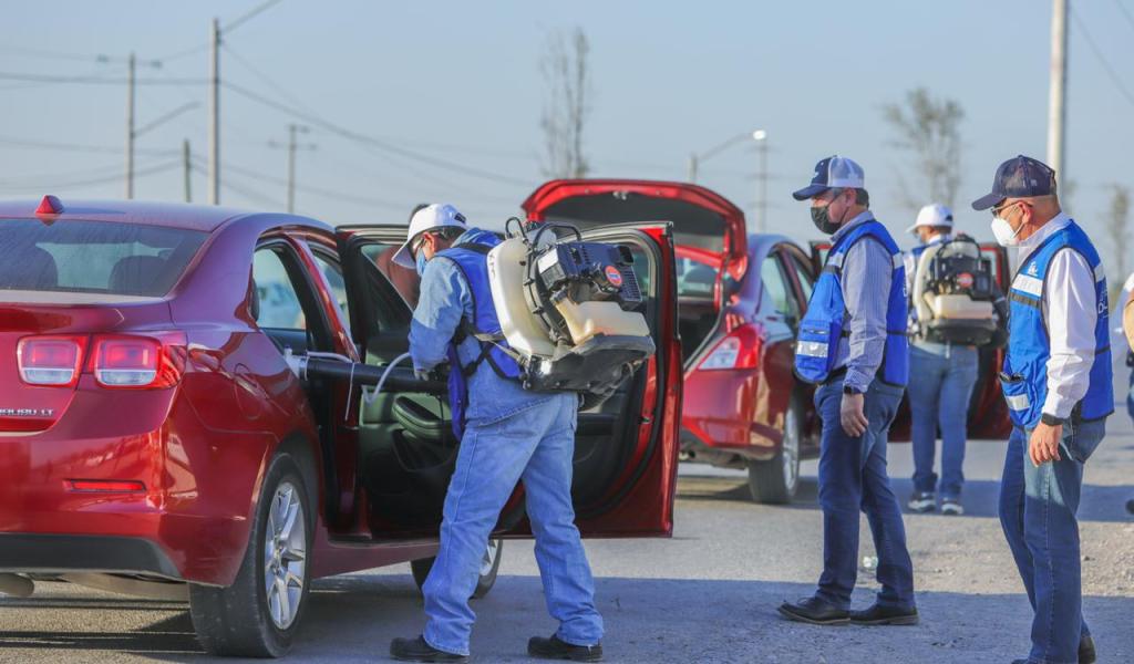 Cerca de 300 conductores de unidades de transporte público y particulares de Reynosa participaron en una nueva jornada de desinfección contra el COVID-19 en Reynosa, a fin de prevenir contagios contra la enfermedad.