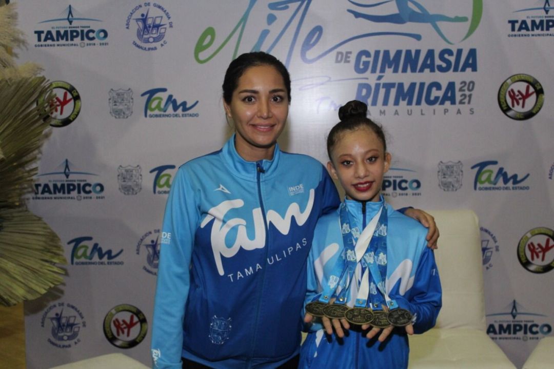 La tamaulipeca logró cuatro medallas de oro en las modalidades de: cuerda, pelota, cinta y all-around, mientras que en clavas alcanzó medalla de plata.