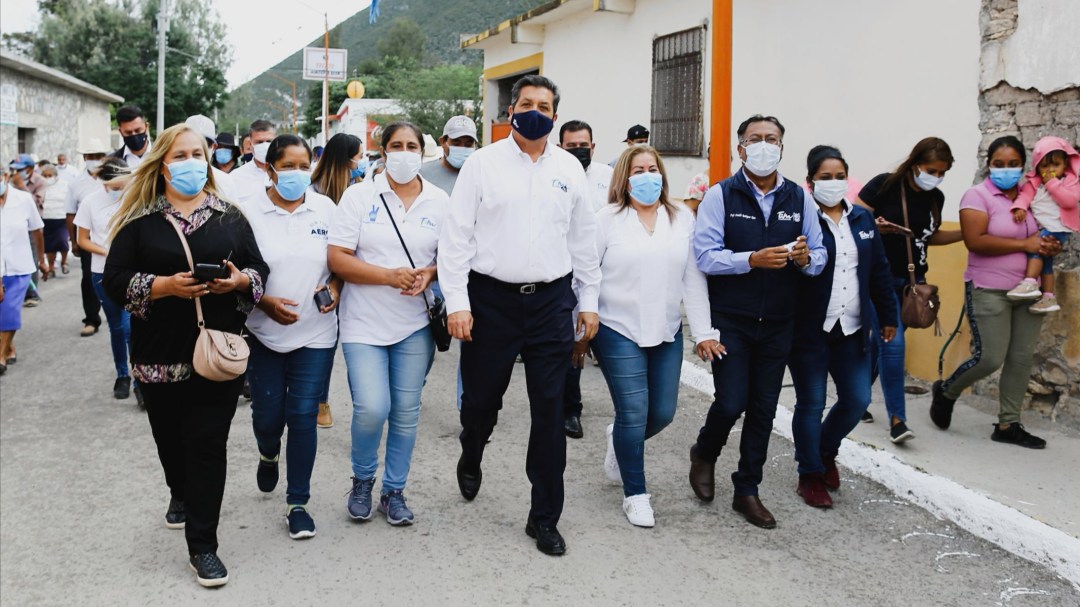 Acompañado por la alcaldesa Marisela Rodríguez González y vecinos de la localidad, García Cabeza de Vaca inauguró las calles Morelos, Juárez y Escobedo, obra pública contemplada en el programa de rehabilitación, pavimentación, alumbrado público, guarniciones y banquetas 2021.