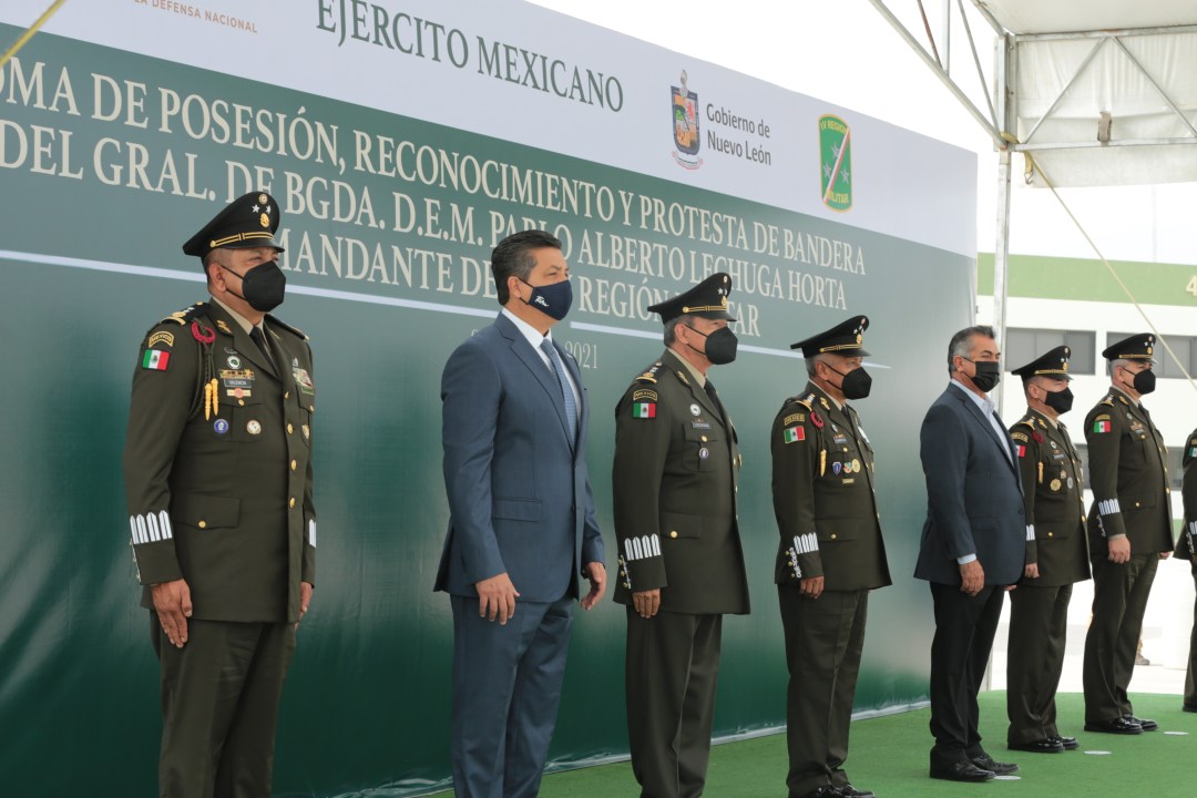 En el marco de la ceremonia solemne de toma de posesión, reconocimiento y protesta de bandera del General de Brigada Diplomado de Estado Mayor, Pablo Alberto Lechuga Orta como Comandante de la IV Región Militar, el mandatario reconoció las tareas en coordinación con fuerzas estatales, mismas que se han cumplido con éxito en la entidad.