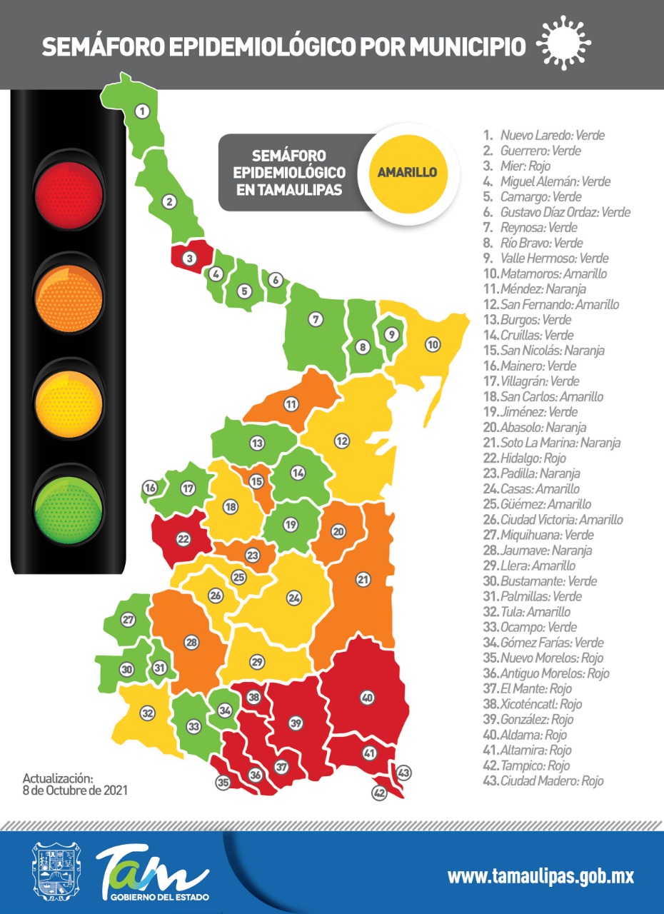 Al presentar el reporte diario sobre el estado de la pandemia de COVID-19, la secretaria de Salud de Tamaulipas, Gloria Molina Gamboa aseguró que durante los últimos días se ha registrado una disminución en el número de contagios, lo que ha permitido avanzar a semáforo epidemiológico amarillo, “sin embargo es importante no bajar la guardia ya que la emergencia no ha terminado”.