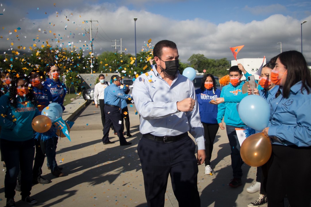 Más adelante, el Rector Electo visitó las áreas de tecnología con que cuenta la Preparatoria, donde sostuvo una interacción con estudiantes que tomaban clases virtuales, a quienes les comunicó que la Universidad está previendo acciones para regresar en el mes de enero a las clases presenciales de manera escalonada y gradual.
