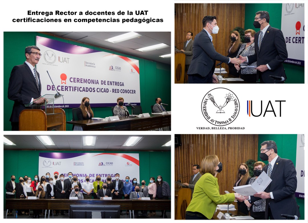 El Rector de la Universidad Autónoma de Tamaulipas (UAT) Ing. José Andrés Suárez Fernández presidió en el Campus Victoria la ceremonia virtual de entrega de certificaciones en estándares de competencias pedagógicas a personal docente y administrativo de las diferentes facultades y unidades académicas del norte, centro y sur del estado.