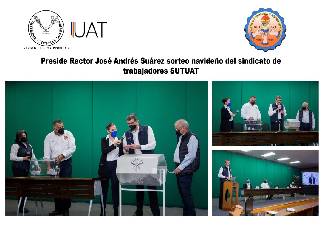 El Rector de la Universidad Autónoma de Tamaulipas (UAT) Ing. José Andrés Suarez Fernández presidió el sorteo de regalos navideños 2021 que el Sindicato Único de Trabajadores (SUTUAT) otorga a sus agremiados.