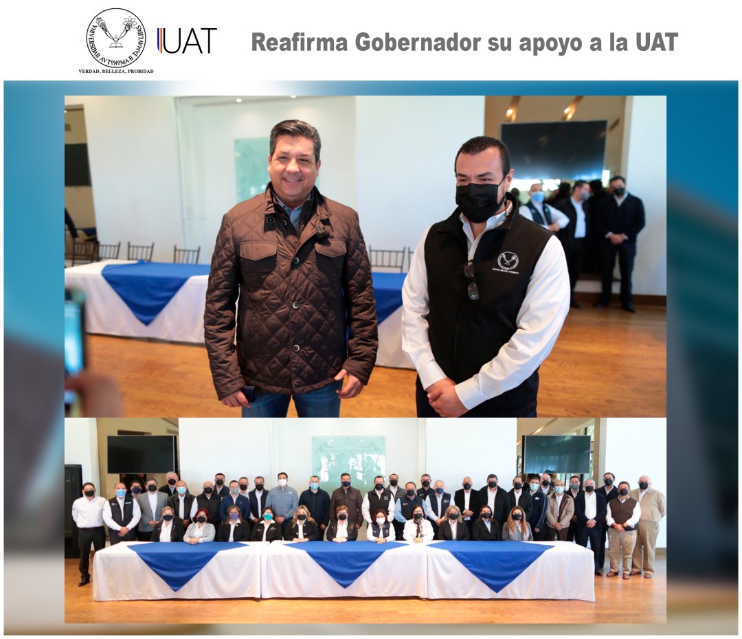 El Gobernador Francisco García Cabeza de Vaca reafirmó su apoyo a la Universidad Autónoma de Tamaulipas (UAT), luego de recibir en Casa Tam la visita del Rector Guillermo Mendoza Cavazos, integrantes de su equipo y representantes de la comunidad universitaria.