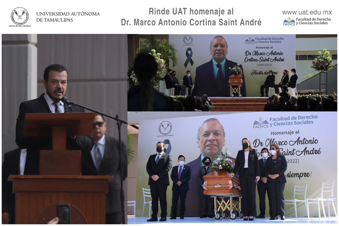 El Rector Guillermo Mendoza Cavazos encabezó en el Campus Tampico el homenaje póstumo que rindió laUniversidad Autónoma de Tamaulipas (UAT) al Dr. Marco Antonio Cortina Saint André, quien falleció el reciente fin de semana siendo Director de la Facultad de Derecho y Ciencias Sociales de Tampico (FADYCS).