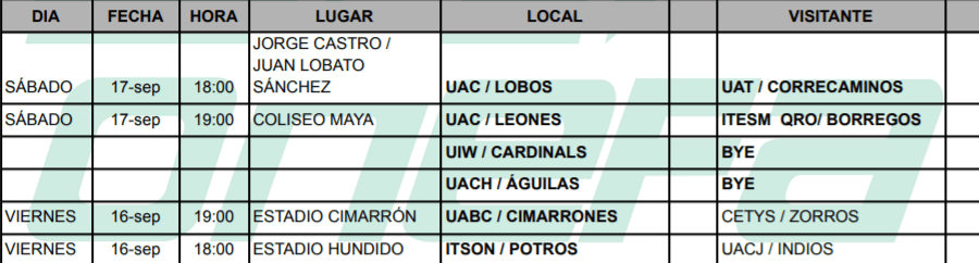 Correcaminos abrirá temporada en calidad de local el 3 de septiembre ante Borregos Querétaro; su semana de descanso será en la jornada 2.