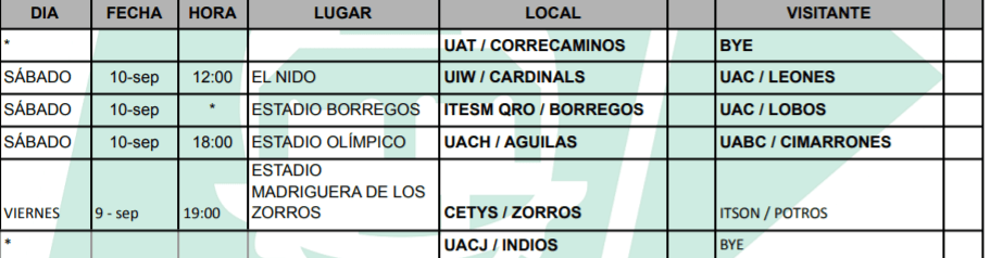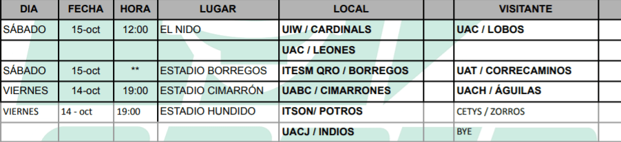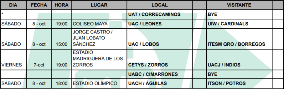 Ciudad Victoria, Tamps.- Tras la XLV Asamblea de la Organización Nacional Estudiantil de Fútbol Americano, celebrada este fin de semana en Quintana Roo, se conformaron los calendarios de la temporada 2022 de la categoría Liga Mayor, la cual comenzará a inicios del mes de septiembre.