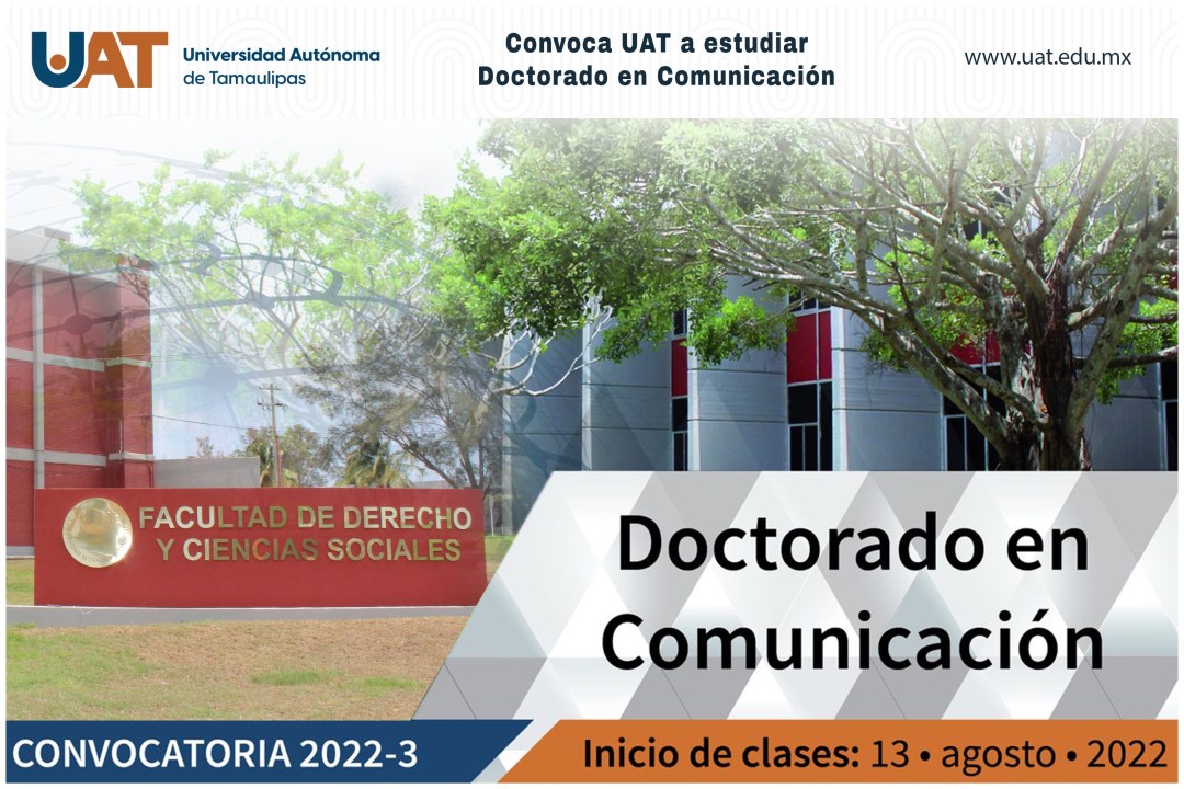 La Facultad de Derecho y Ciencias Sociales (FADYCS) de la Universidad Autónoma de Tamaulipas (UAT) en Tampico convoca a profesionistas con deseos de continuar su preparación académica a participar en la convocatoria 2022 del Doctorado en Comunicación, cuya fecha límite de recepción de documentos es el 31 de mayo.