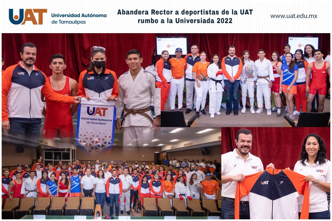 El Rector de la Universidad Autónoma de Tamaulipas (UAT) C.P. Guillermo Mendoza Cavazos, abanderó a la delegación deportiva que representará a la máxima casa de estudios de la entidad en la Universiada Nacional 2022 que se desarrollará del 12 de mayo al 5 de junio en Ciudad Juárez, Chihuahua.