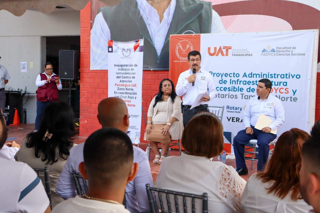 En el arranque de esta importante iniciativa, que tiene como propósito promover la educación inclusiva y brindar igualdad de condiciones a toda la comunidad universitaria, el rector Dámaso Anaya develó la placa conmemorativa para el comienzo de esta infraestructura en la Facultad de Derecho y Ciencias Sociales de Tampico (FADYCS).